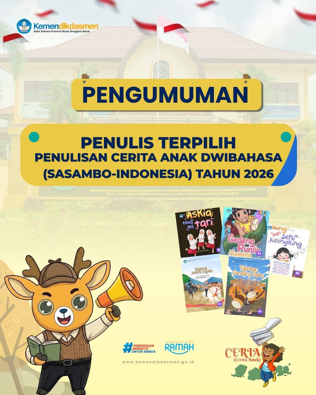 Kota Bima — Kabar membanggakan datang dari dunia pendidikan di wilayah Kota Bima khususnya di Sekolah Puncak. Salah seorang guru, Mr. Yats, kembali menorehkan prestasi gemilang dengan berhasil lolos sebagai penulis cerita anak dwibahasa Jenjang A dan B1 dalam program yang diselenggarakan oleh Balai Bahasa Nusa Tenggara Barat (NTB) tahun 2026. Ia menjadi salah satu dari 50 peserta terpilih dari lebih dari 230 pendaftar yang berasal dari berbagai daerah di NTB.